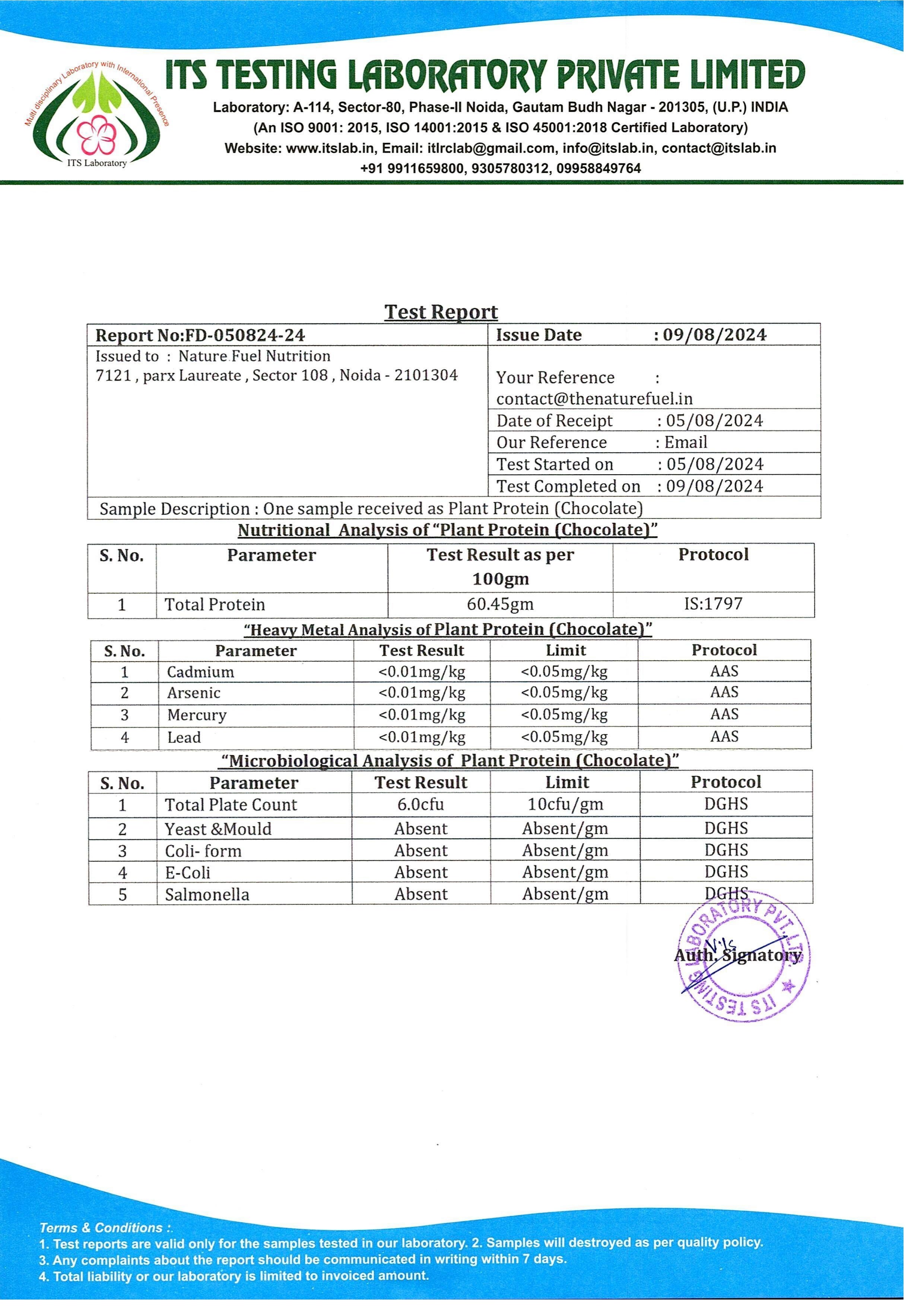Every batch of our clean plant protein is tested for Protein content, Heavy Metals, and Microbial Pathogens by an independent third-party NABL-accredited lab.